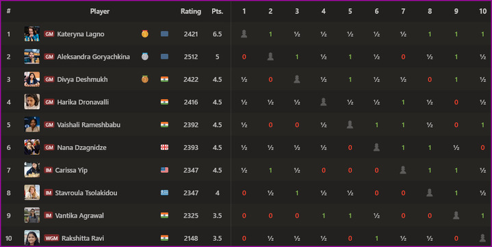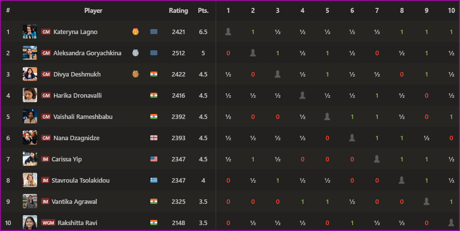 В женском турнире первой стала Катерина Лагно, набравшая 6,5 очков. На 1,5 очка отстала А.Горячкина.