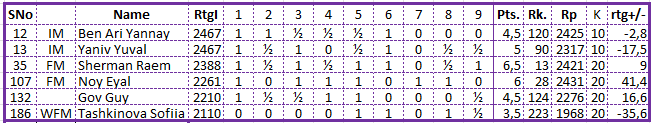 В австрийском Граце прошёл открытый турнир с первым призом 1500 евро. Первым по дополнительным показателям стал Лоик Травадон (Франция, 2483) - 7,5 очков из 9. Столько же набрали Б.Лалит (Индия, 2511) и Р.Дегтярёв (Украина, 2430). Лучший результат среди израильтян показал Р.Шерман (2388) - 6,5 очков. Вот результаты всех израильтян: