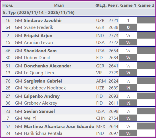 Несколько моментов по табличке с продолжающему борьбу шахматистами. Среди 16 участников только два из топ-10 турнира. Борьбу продолжает Г.Саркисян, который выбил из турнира израильтянина М.Родштейна. В Кубке большое значение имеет игра не только в классику, но и в коротких форматах. Именно на тайбрейке по большой части решается судьба матча. Так в 1/16 финала 11 матчей закончилось таким образом.