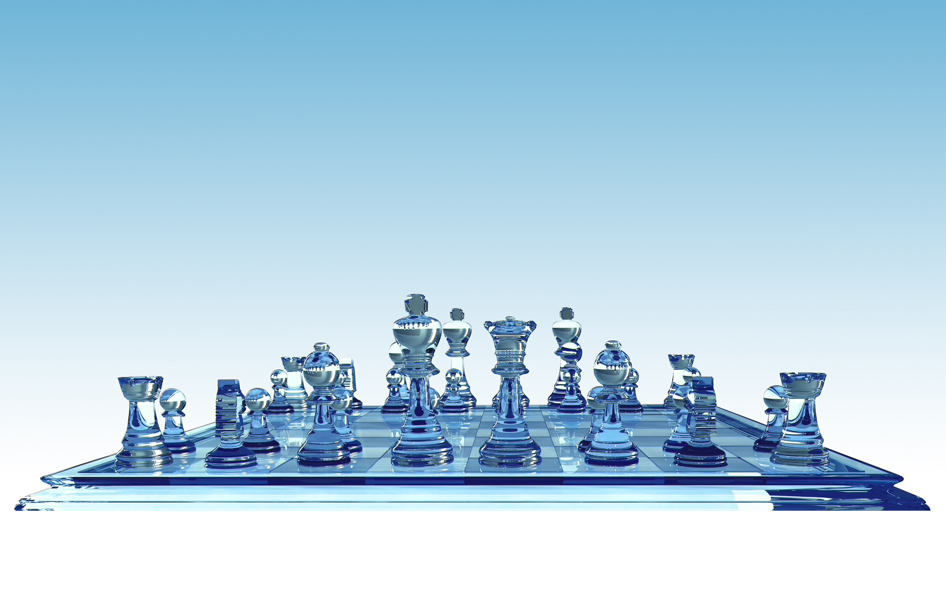 Шахматные обои для рабочего стола персонального компьютера в строгих бело-голубых стеклянных тонах. Разрешение 1920х1200 пикселей.