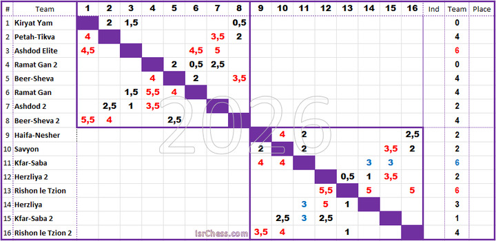 В Израиле прошёл третий тур командного чемпионата страны в высшей лиге. В обоих группах появились лидеры. В группе А все три матча выиграл Ашдод Элит, а в группе В первая команда Ришона. Завтра четвёртый тур (один матч этого тура уже сыгран).
